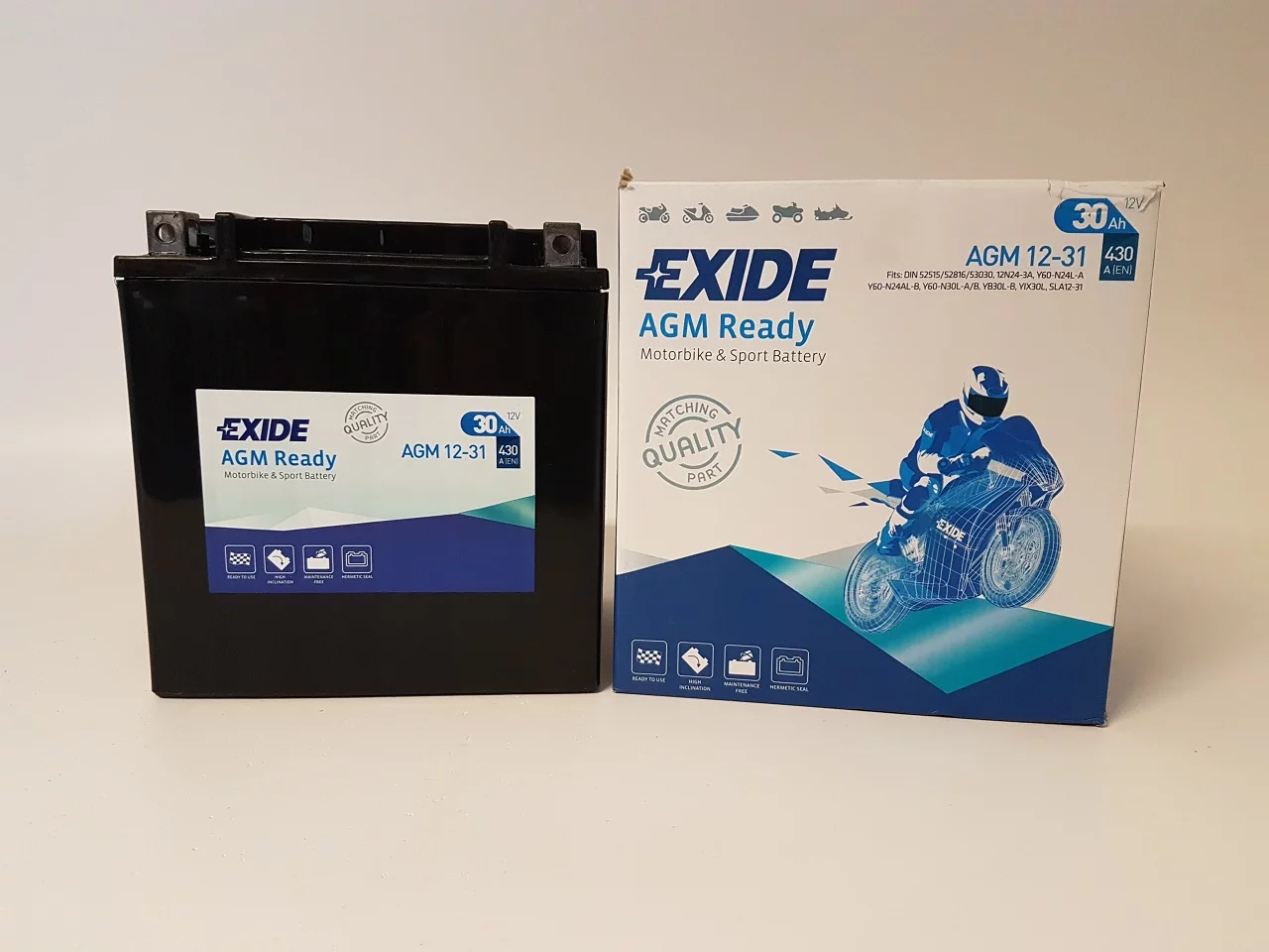 Exide dostarcza najwyższej jakości akumulatory do motocykli, zaprojektowane dla tych, którzy mają wysokie wymagania wobec swoich pojazdów. Do ich produkcji stosowane są najbardziej zaawansowane części i materiały dlatego są znane z niezawodności i doskonałej żywotności. Umożliwiają nie tylko pokonanie codziennej drogi do pracy ale również pozwalają na dotarcie do dalszych celów podróży, tych lądowych i morskich. Exide jest producentem oryginalnego sprzętu na tzw. pierwsze wyposażenie, dysponującym najbardziej nowoczesną technologią w branży.Akumulator AGM Ready - zapewnia maksymalną moc i jest prosty w obsłudze - to produkt typu "zainstaluj i zapomnij". Nie wymaga początkowego napełniania elektrolitem lub późniejszego uzupełniania wodą!. Akumulator jest szczelną konstrukcją, odporną na wyciek elektrolitu i wibracje, idealnie dostosowaną do użytku w pojazdach sportowych, terenowych i do innych ekstremalnych zastosowań. Exide AGM Ready to niezrównana wydajność i doskonała moc rozruchowa w każdych warunkach pogodowych, dzięki czemu może być stosowany także w skuterach wodnych.