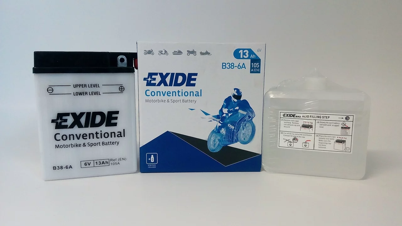 Exide dostarcza najwyższej jakości akumulatory do motocykli, zaprojektowane dla tych, którzy mają wysokie wymagania wobec swoich pojazdów. Do ich produkcji stosowane są najbardziej zaawansowane części i materiały dlatego są znane z niezawodności i doskonałej żywotności. Umożliwiają nie tylko pokonanie codziennej drogi do pracy ale również pozwalają na dotarcie do dalszych celów podróży, tych lądowych i morskich. Exide jest producentem oryginalnego sprzętu na tzw. pierwsze wyposażenie, dysponującym najbardziej nowoczesną technologią w branży.Akumulator Exide Conventional - został zaprojektowany w technologii ołowiowo - kwasowej na potrzeby podstawowych pojazdów oraz pojazdów starszego typu o podstawowym zapotrzebowaniu energetycznym. Akumulator Conventional sprawdzi się także w kosiarkach ogrodowych oraz w innych pojazdach tego typu.
