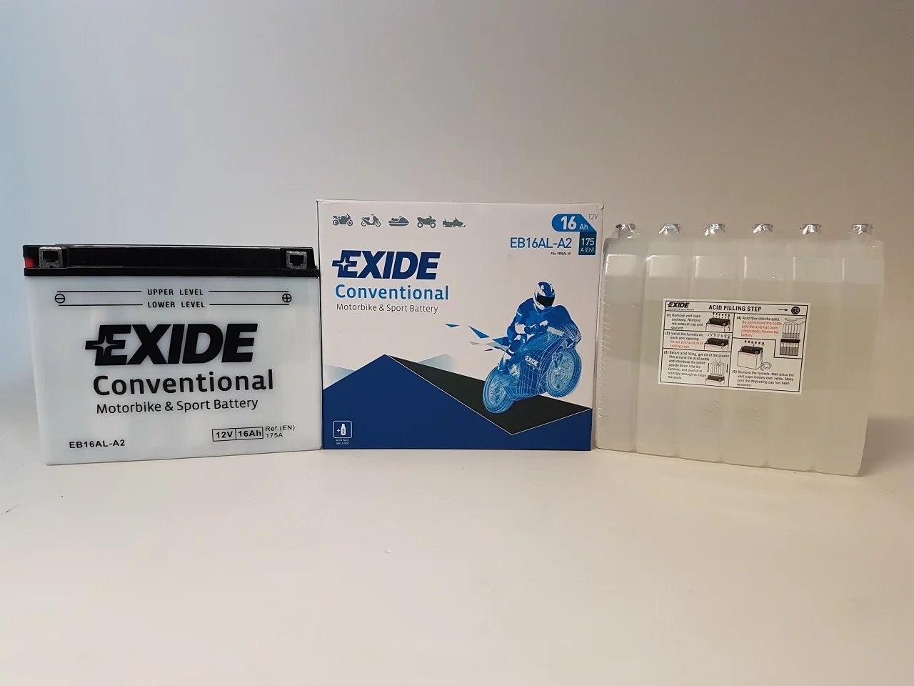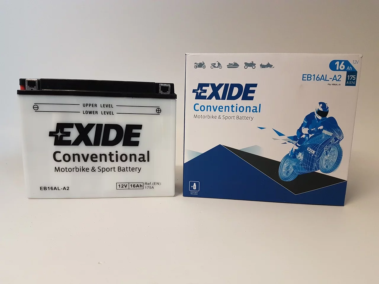 Exide dostarcza najwyższej jakości akumulatory do motocykli, zaprojektowane dla tych, którzy mają wysokie wymagania wobec swoich pojazdów. Do ich produkcji stosowane są najbardziej zaawansowane części i materiały dlatego są znane z niezawodności i doskonałej żywotności. Umożliwiają nie tylko pokonanie codziennej drogi do pracy ale również pozwalają na dotarcie do dalszych celów podróży, tych lądowych i morskich. Exide jest producentem oryginalnego sprzętu na tzw. pierwsze wyposażenie, dysponującym najbardziej nowoczesną technologią w branży.Akumulator Exide Conventional - został zaprojektowany w technologii ołowiowo - kwasowej na potrzeby podstawowych pojazdów oraz pojazdów starszego typu o podstawowym zapotrzebowaniu energetycznym. Akumulator Conventional sprawdzi się także w kosiarkach ogrodowych oraz w innych pojazdach tego typu.