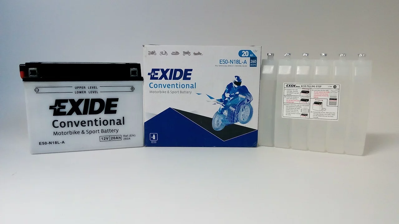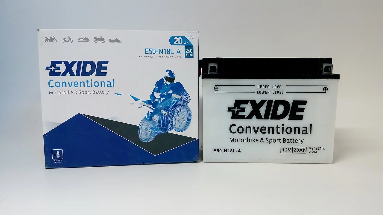 Exide dostarcza najwyższej jakości akumulatory do motocykli, zaprojektowane dla tych, którzy mają wysokie wymagania wobec swoich pojazdów. Do ich produkcji stosowane są najbardziej zaawansowane części i materiały dlatego są znane z niezawodności i doskonałej żywotności. Umożliwiają nie tylko pokonanie codziennej drogi do pracy ale również pozwalają na dotarcie do dalszych celów podróży, tych lądowych i morskich. Exide jest producentem oryginalnego sprzętu na tzw. pierwsze wyposażenie, dysponującym najbardziej nowoczesną technologią w branży.Akumulator Exide Conventional - został zaprojektowany w technologii ołowiowo - kwasowej na potrzeby podstawowych pojazdów oraz pojazdów starszego typu o podstawowym zapotrzebowaniu energetycznym. Akumulator Conventional sprawdzi się także w kosiarkach ogrodowych oraz w innych pojazdach tego typu.