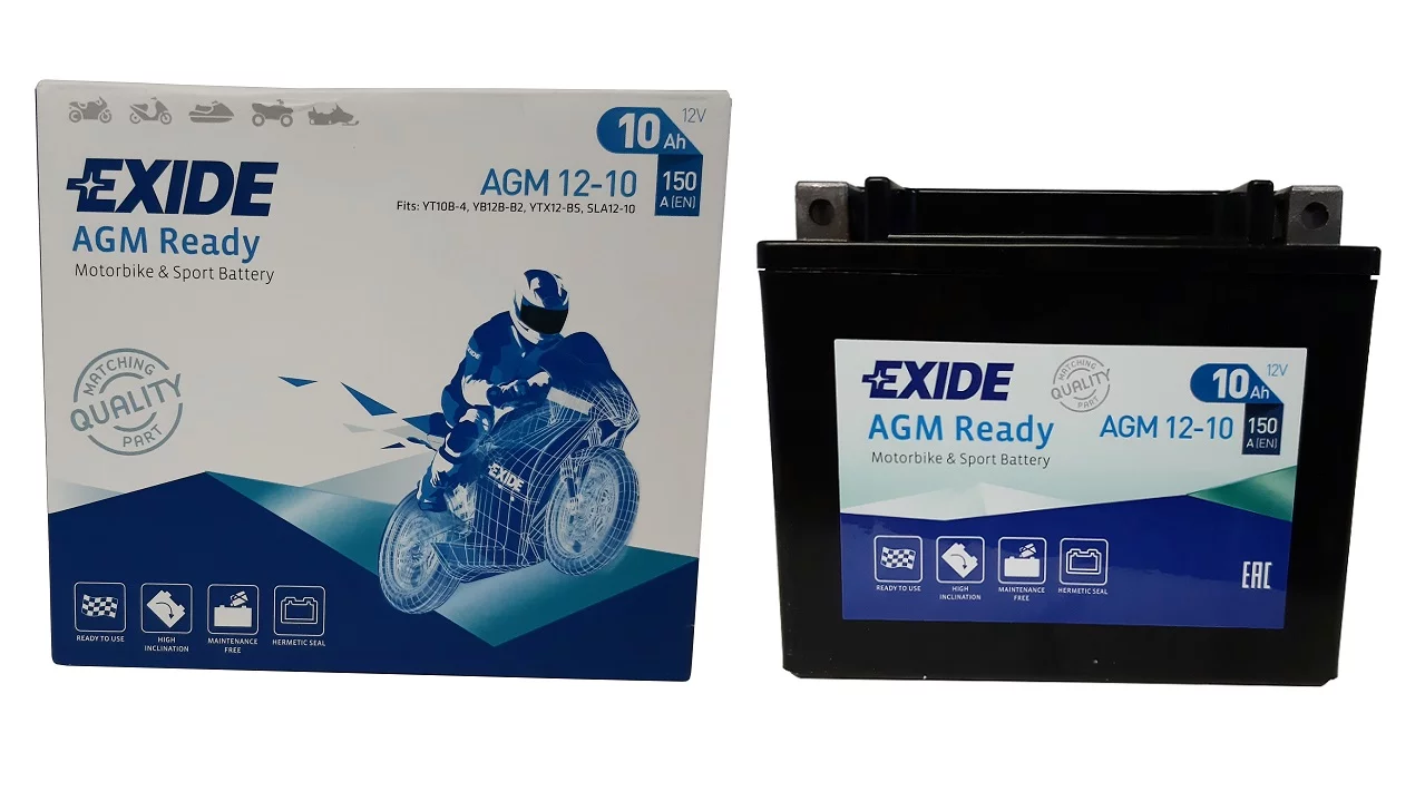 Exide dostarcza najwyższej jakości akumulatory do motocykli, zaprojektowane dla tych, którzy mają wysokie wymagania wobec swoich pojazdów. Do ich produkcji stosowane są najbardziej zaawansowane części i materiały dlatego są znane z niezawodności i doskonałej żywotności. Umożliwiają nie tylko pokonanie codziennej drogi do pracy ale również pozwalają na dotarcie do dalszych celów podróży, tych lądowych i morskich. Exide jest producentem oryginalnego sprzętu na tzw. pierwsze wyposażenie, dysponującym najbardziej nowoczesną technologią w branży.Akumulator AGM Ready - zapewnia maksymalną moc i jest prosty w obsłudze - to produkt typu "zainstaluj i zapomnij". Nie wymaga początkowego napełniania elektrolitem lub późniejszego uzupełniania wodą!. Akumulator jest szczelną konstrukcją, odporną na wyciek elektrolitu i wibracje, idealnie dostosowaną do użytku w pojazdach sportowych, terenowych i do innych ekstremalnych zastosowań. Exide AGM Ready to niezrównana wydajność i doskonała moc rozruchowa w każdych warunkach pogodowych, dzięki czemu może być stosowany także w skuterach wodnych.