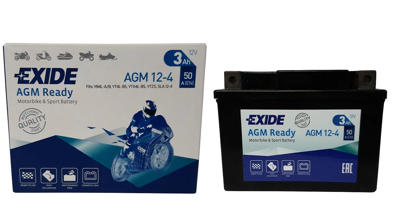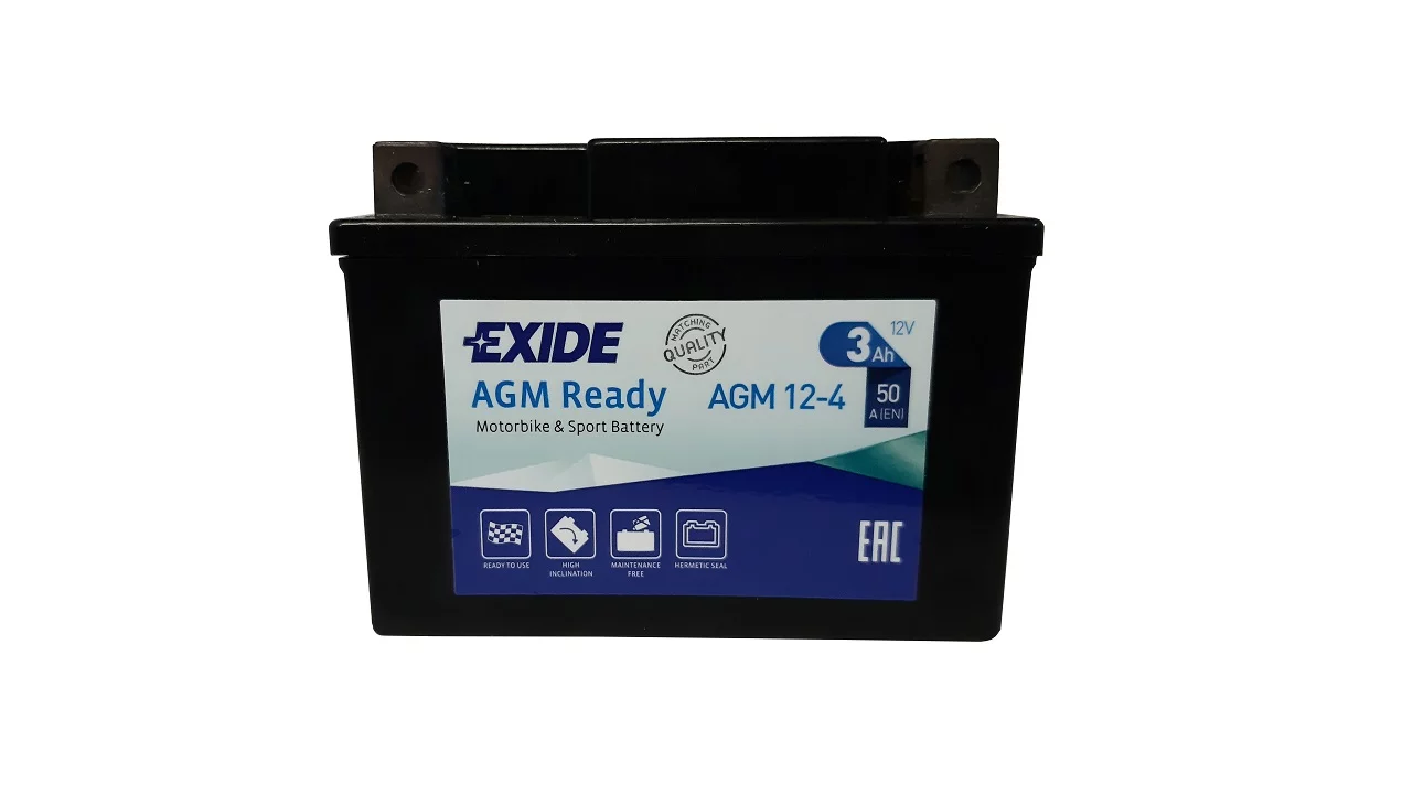 Exide dostarcza najwyższej jakości akumulatory do motocykli, zaprojektowane dla tych, którzy mają wysokie wymagania wobec swoich pojazdów. Do ich produkcji stosowane są najbardziej zaawansowane części i materiały dlatego są znane z niezawodności i doskonałej żywotności. Umożliwiają nie tylko pokonanie codziennej drogi do pracy ale również pozwalają na dotarcie do dalszych celów podróży, tych lądowych i morskich. Exide jest producentem oryginalnego sprzętu na tzw. pierwsze wyposażenie, dysponującym najbardziej nowoczesną technologią w branży.Akumulator AGM Ready - zapewnia maksymalną moc i jest prosty w obsłudze - to produkt typu "zainstaluj i zapomnij". Nie wymaga początkowego napełniania elektrolitem lub późniejszego uzupełniania wodą!. Akumulator jest szczelną konstrukcją, odporną na wyciek elektrolitu i wibracje, idealnie dostosowaną do użytku w pojazdach sportowych, terenowych i do innych ekstremalnych zastosowań. Exide AGM Ready to niezrównana wydajność i doskonała moc rozruchowa w każdych warunkach pogodowych, dzięki czemu może być stosowany także w skuterach wodnych.