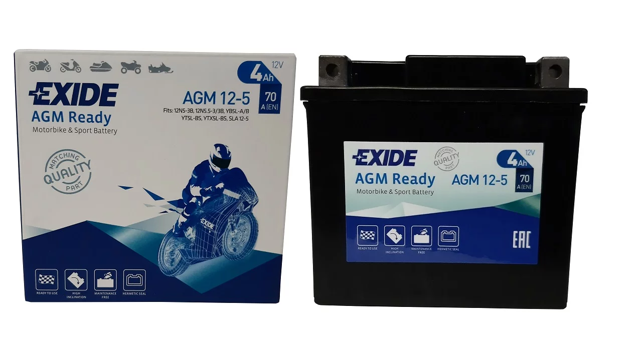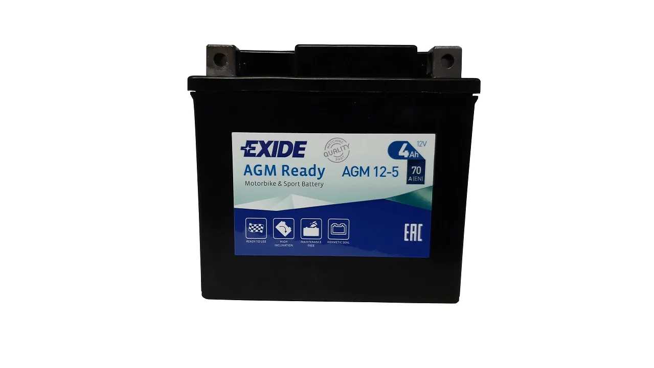 Exide dostarcza najwyższej jakości akumulatory do motocykli, zaprojektowane dla tych, którzy mają wysokie wymagania wobec swoich pojazdów. Do ich produkcji stosowane są najbardziej zaawansowane części i materiały dlatego są znane z niezawodności i doskonałej żywotności. Umożliwiają nie tylko pokonanie codziennej drogi do pracy ale również pozwalają na dotarcie do dalszych celów podróży, tych lądowych i morskich. Exide jest producentem oryginalnego sprzętu na tzw. pierwsze wyposażenie, dysponującym najbardziej nowoczesną technologią w branży.Akumulator AGM Ready - zapewnia maksymalną moc i jest prosty w obsłudze - to produkt typu "zainstaluj i zapomnij". Nie wymaga początkowego napełniania elektrolitem lub późniejszego uzupełniania wodą!. Akumulator jest szczelną konstrukcją, odporną na wyciek elektrolitu i wibracje, idealnie dostosowaną do użytku w pojazdach sportowych, terenowych i do innych ekstremalnych zastosowań. Exide AGM Ready to niezrównana wydajność i doskonała moc rozruchowa w każdych warunkach pogodowych, dzięki czemu może być stosowany także w skuterach wodnych.