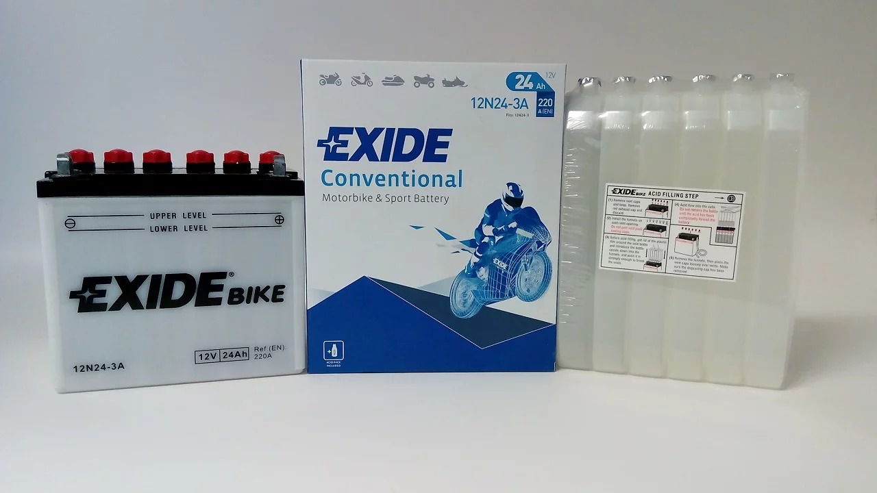 Exide dostarcza najwyższej jakości akumulatory do motocykli, zaprojektowane dla tych, którzy mają wysokie wymagania wobec swoich pojazdów. Do ich produkcji stosowane są najbardziej zaawansowane części i materiały dlatego są znane z niezawodności i doskonałej żywotności. Umożliwiają nie tylko pokonanie codziennej drogi do pracy ale również pozwalają na dotarcie do dalszych celów podróży, tych lądowych i morskich. Exide jest producentem oryginalnego sprzętu na tzw. pierwsze wyposażenie, dysponującym najbardziej nowoczesną technologią w branży.Akumulator Exide Conventional - został zaprojektowany w technologii ołowiowo - kwasowej na potrzeby podstawowych pojazdów oraz pojazdów starszego typu o podstawowym zapotrzebowaniu energetycznym. Akumulator Conventional sprawdzi się także w kosiarkach ogrodowych oraz w innych pojazdach tego typu.