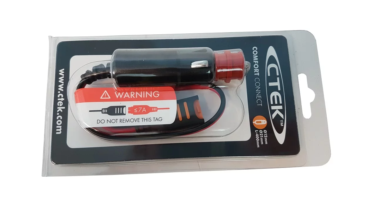 CTEK COMFORT CONNECT CIG-PLUG – wtyczka do gniazda zapalniczki wraz ze specjalną szybko złączką ułatwiającą podłączenie do ładowania. Długość kabla 0.4m, max. prąd ładowania 7A. Oznaczenie wg producenta CTEK 56-263.Dzięki Ctek Comfort Connect Cig-Plug i ładowarce Ctek masz zawsze możliwość podładowania swojego akumulatora bez zaglądania pod maskę. Wpinamy wtyczkę CTEK do gniazda zapalniczki samochodu i ładujemy akumulator.