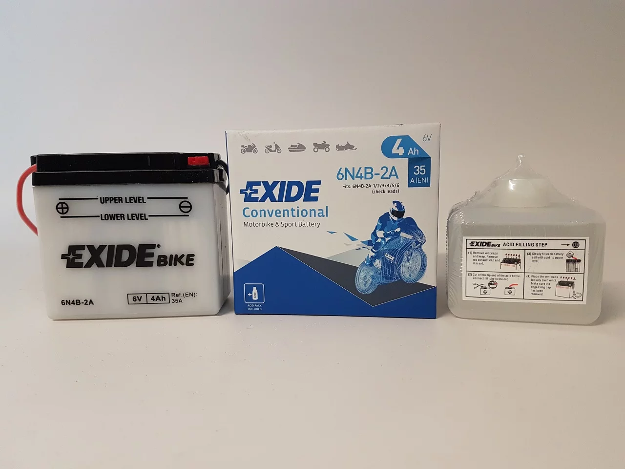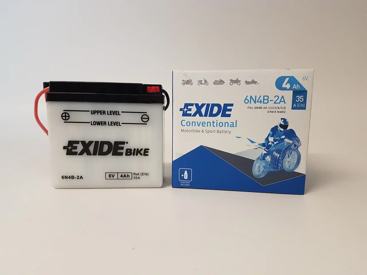 Exide dostarcza najwyższej jakości akumulatory do motocykli, zaprojektowane dla tych, którzy mają wysokie wymagania wobec swoich pojazdów. Do ich produkcji stosowane są najbardziej zaawansowane części i materiały dlatego są znane z niezawodności i doskonałej żywotności. Umożliwiają nie tylko pokonanie codziennej drogi do pracy ale również pozwalają na dotarcie do dalszych celów podróży, tych lądowych i morskich. Exide jest producentem oryginalnego sprzętu na tzw. pierwsze wyposażenie, dysponującym najbardziej nowoczesną technologią w branży.Akumulator Exide Conventional - został zaprojektowany w technologii ołowiowo - kwasowej na potrzeby podstawowych pojazdów oraz pojazdów starszego typu o podstawowym zapotrzebowaniu energetycznym. Akumulator Conventional sprawdzi się także w kosiarkach ogrodowych oraz w innych pojazdach tego typu.