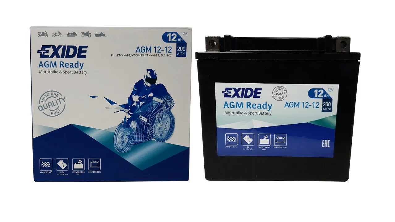 Exide dostarcza najwyższej jakości akumulatory do motocykli, zaprojektowane dla tych, którzy mają wysokie wymagania wobec swoich pojazdów. Do ich produkcji stosowane są najbardziej zaawansowane części i materiały dlatego są znane z niezawodności i doskonałej żywotności. Umożliwiają nie tylko pokonanie codziennej drogi do pracy ale również pozwalają na dotarcie do dalszych celów podróży, tych lądowych i morskich. Exide jest producentem oryginalnego sprzętu na tzw. pierwsze wyposażenie, dysponującym najbardziej nowoczesną technologią w branży.Akumulator AGM Ready - zapewnia maksymalną moc i jest prosty w obsłudze - to produkt typu "zainstaluj i zapomnij". Nie wymaga początkowego napełniania elektrolitem lub późniejszego uzupełniania wodą!. Akumulator jest szczelną konstrukcją, odporną na wyciek elektrolitu i wibracje, idealnie dostosowaną do użytku w pojazdach sportowych, terenowych i do innych ekstremalnych zastosowań. Exide AGM Ready to niezrównana wydajność i doskonała moc rozruchowa w każdych warunkach pogodowych, dzięki czemu może być stosowany także w skuterach wodnych.
