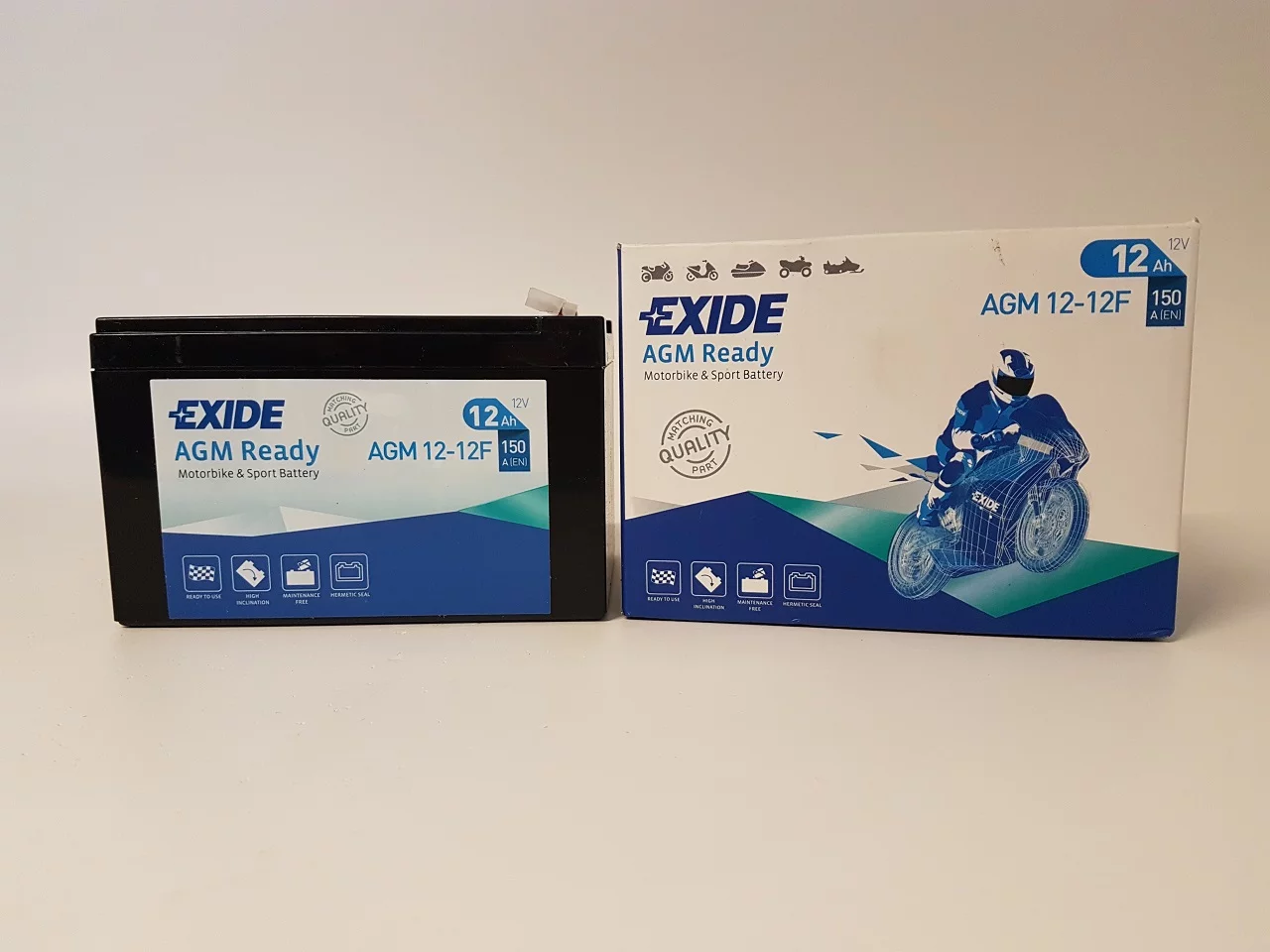 Exide dostarcza najwyższej jakości akumulatory do motocykli, zaprojektowane dla tych, którzy mają wysokie wymagania wobec swoich pojazdów. Do ich produkcji stosowane są najbardziej zaawansowane części i materiały dlatego są znane z niezawodności i doskonałej żywotności. Umożliwiają nie tylko pokonanie codziennej drogi do pracy ale również pozwalają na dotarcie do dalszych celów podróży, tych lądowych i morskich. Exide jest producentem oryginalnego sprzętu na tzw. pierwsze wyposażenie, dysponującym najbardziej nowoczesną technologią w branży.Akumulator AGM Ready - zapewnia maksymalną moc i jest prosty w obsłudze - to produkt typu "zainstaluj i zapomnij". Nie wymaga początkowego napełniania elektrolitem lub późniejszego uzupełniania wodą!. Akumulator jest szczelną konstrukcją, odporną na wyciek elektrolitu i wibracje, idealnie dostosowaną do użytku w pojazdach sportowych, terenowych i do innych ekstremalnych zastosowań. Exide AGM Ready to niezrównana wydajność i doskonała moc rozruchowa w każdych warunkach pogodowych, dzięki czemu może być stosowany także w skuterach wodnych.