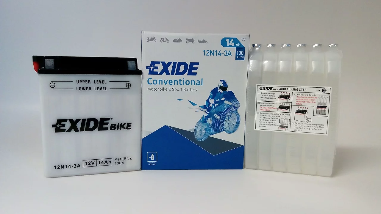 Exide dostarcza najwyższej jakości akumulatory do motocykli, zaprojektowane dla tych, którzy mają wysokie wymagania wobec swoich pojazdów. Do ich produkcji stosowane są najbardziej zaawansowane części i materiały dlatego są znane z niezawodności i doskonałej żywotności. Umożliwiają nie tylko pokonanie codziennej drogi do pracy ale również pozwalają na dotarcie do dalszych celów podróży, tych lądowych i morskich. Exide jest producentem oryginalnego sprzętu na tzw. pierwsze wyposażenie, dysponującym najbardziej nowoczesną technologią w branży.Akumulator Exide Conventional - został zaprojektowany w technologii ołowiowo - kwasowej na potrzeby podstawowych pojazdów oraz pojazdów starszego typu o podstawowym zapotrzebowaniu energetycznym. Akumulator Conventional sprawdzi się także w kosiarkach ogrodowych oraz w innych pojazdach tego typu.