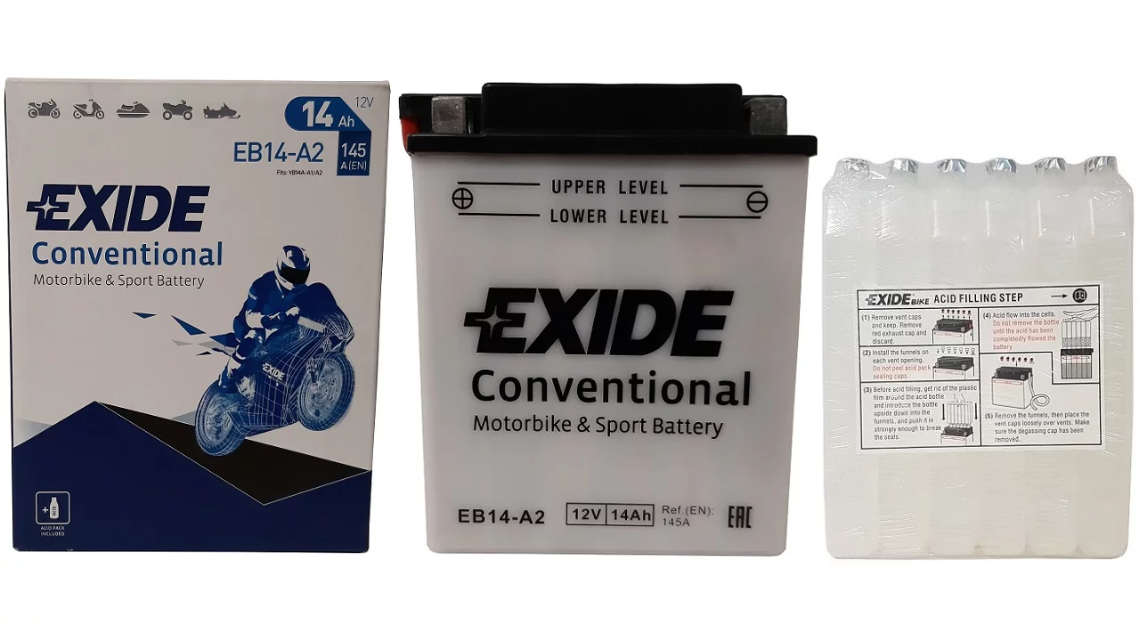 Exide dostarcza najwyższej jakości akumulatory do motocykli, zaprojektowane dla tych, którzy mają wysokie wymagania wobec swoich pojazdów. Do ich produkcji stosowane są najbardziej zaawansowane części i materiały dlatego są znane z niezawodności i doskonałej żywotności. Umożliwiają nie tylko pokonanie codziennej drogi do pracy ale również pozwalają na dotarcie do dalszych celów podróży, tych lądowych i morskich. Exide jest producentem oryginalnego sprzętu na tzw. pierwsze wyposażenie, dysponującym najbardziej nowoczesną technologią w branży.Akumulator Exide Conventional - został zaprojektowany w technologii ołowiowo - kwasowej na potrzeby podstawowych pojazdów oraz pojazdów starszego typu o podstawowym zapotrzebowaniu energetycznym. Akumulator Conventional sprawdzi się także w kosiarkach ogrodowych oraz w innych pojazdach tego typu.