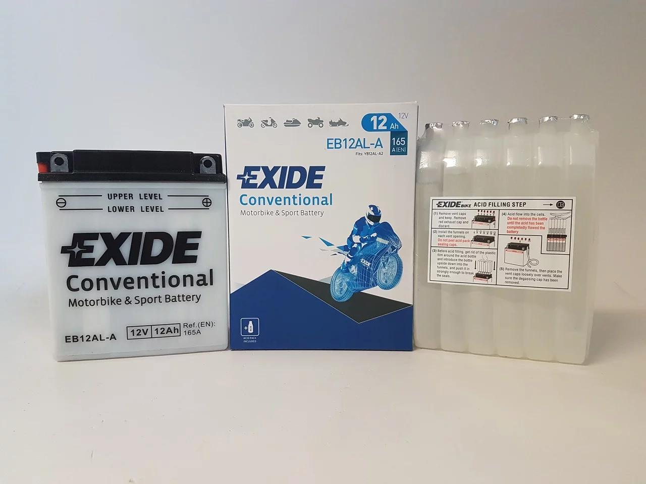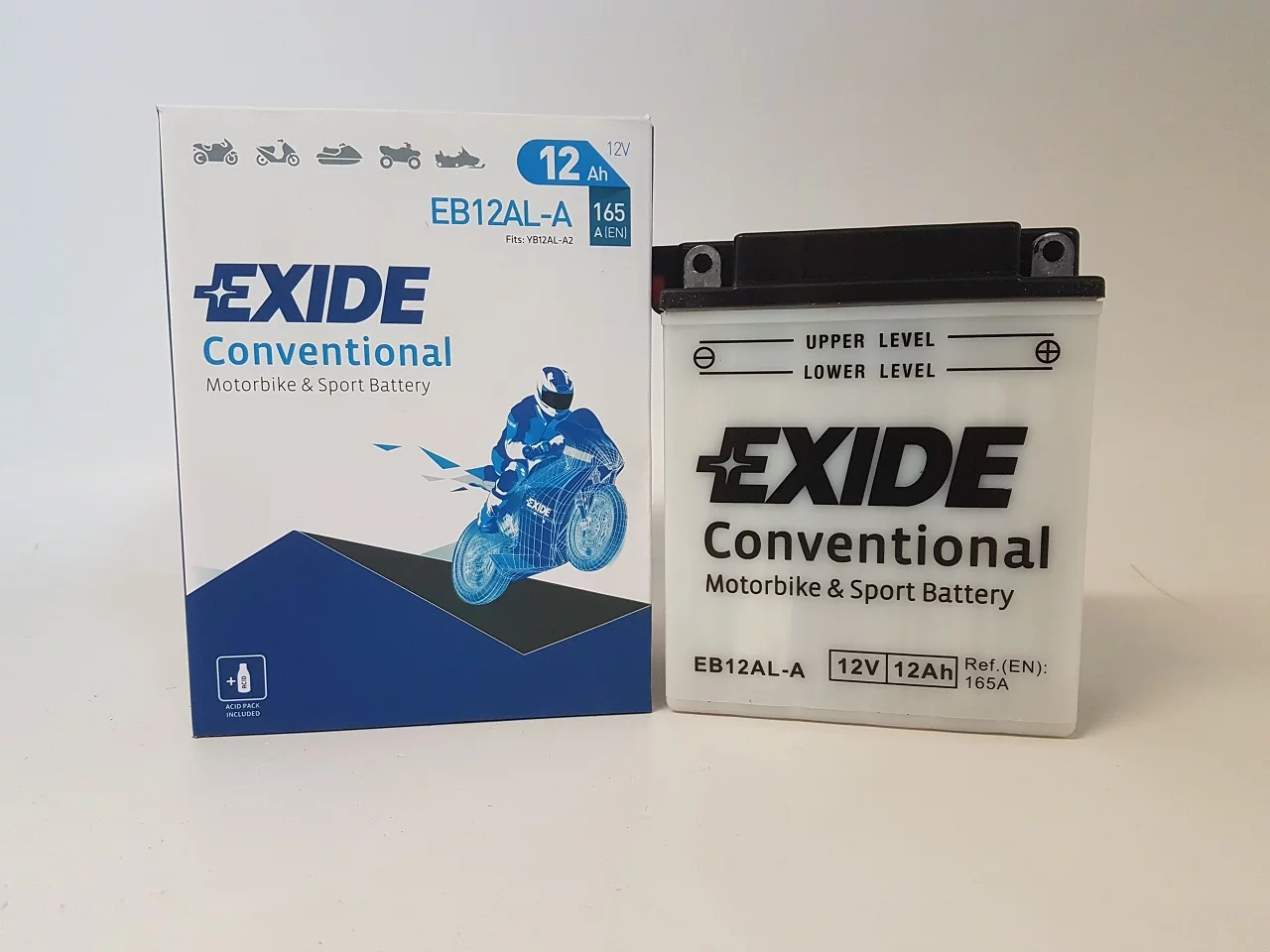 Exide dostarcza najwyższej jakości akumulatory do motocykli, zaprojektowane dla tych, którzy mają wysokie wymagania wobec swoich pojazdów. Do ich produkcji stosowane są najbardziej zaawansowane części i materiały dlatego są znane z niezawodności i doskonałej żywotności. Umożliwiają nie tylko pokonanie codziennej drogi do pracy ale również pozwalają na dotarcie do dalszych celów podróży, tych lądowych i morskich. Exide jest producentem oryginalnego sprzętu na tzw. pierwsze wyposażenie, dysponującym najbardziej nowoczesną technologią w branży.Akumulator Exide Conventional - został zaprojektowany w technologii ołowiowo - kwasowej na potrzeby podstawowych pojazdów oraz pojazdów starszego typu o podstawowym zapotrzebowaniu energetycznym. Akumulator Conventional sprawdzi się także w kosiarkach ogrodowych oraz w innych pojazdach tego typu.
