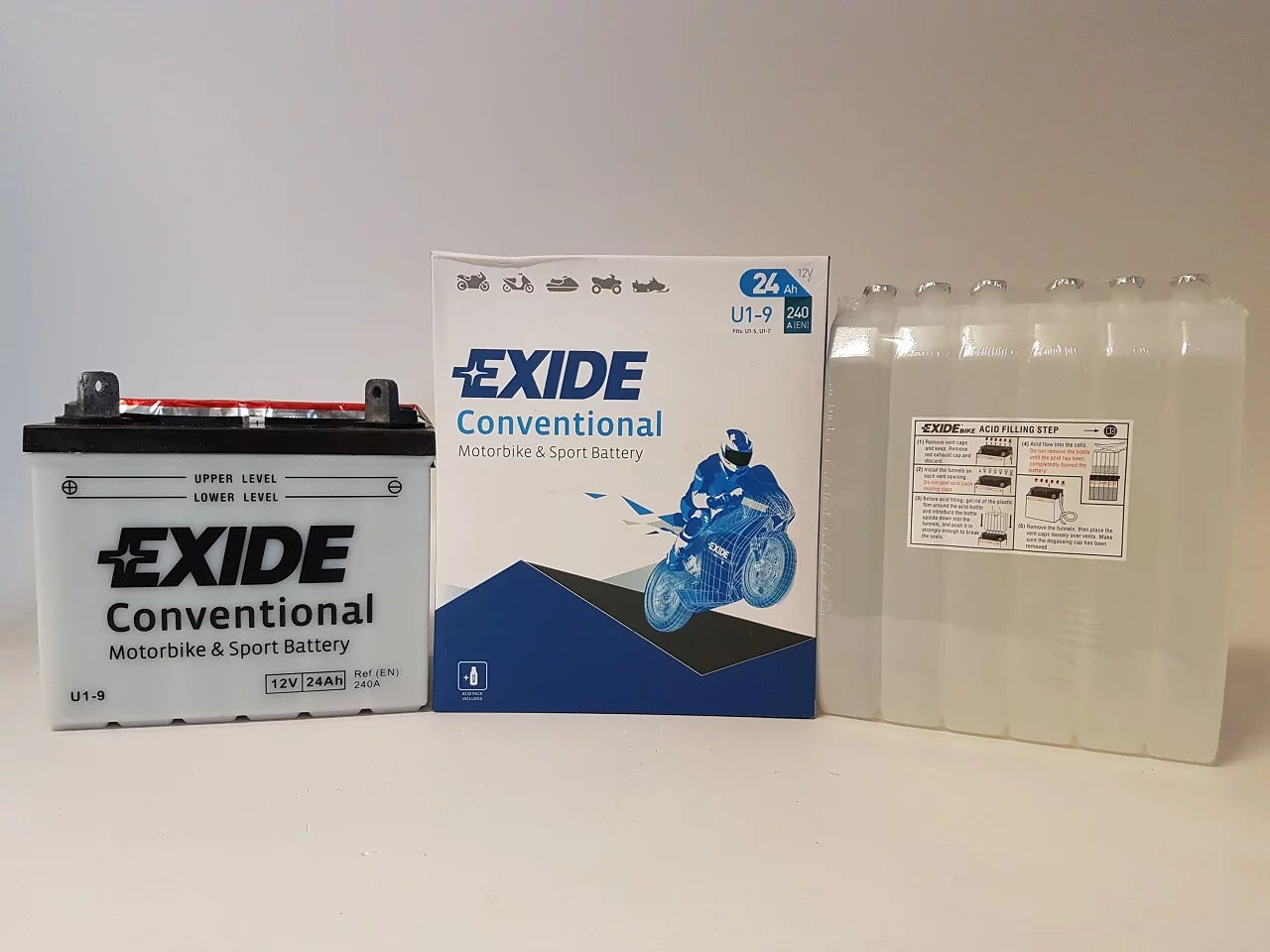 Exide dostarcza najwyższej jakości akumulatory do motocykli, zaprojektowane dla tych, którzy mają wysokie wymagania wobec swoich pojazdów. Do ich produkcji stosowane są najbardziej zaawansowane części i materiały dlatego są znane z niezawodności i doskonałej żywotności. Umożliwiają nie tylko pokonanie codziennej drogi do pracy ale również pozwalają na dotarcie do dalszych celów podróży, tych lądowych i morskich. Exide jest producentem oryginalnego sprzętu na tzw. pierwsze wyposażenie, dysponującym najbardziej nowoczesną technologią w branży.Akumulator Exide Conventional - został zaprojektowany w technologii ołowiowo - kwasowej na potrzeby podstawowych pojazdów oraz pojazdów starszego typu o podstawowym zapotrzebowaniu energetycznym. Akumulator Conventional sprawdzi się także w kosiarkach ogrodowych oraz w innych pojazdach tego typu.
