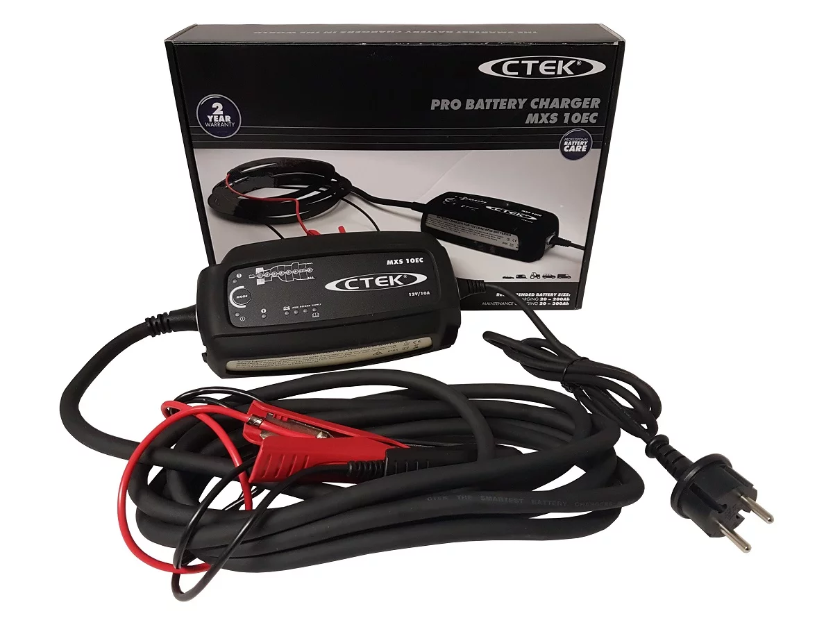 Ładowarka impulsowa CTEK MXS 10EC zalecana jest do wszystkich rodzajów akumulatorów kwasowo-ołowiowych, w tym elektrolitowych, bezobsługowych, żelowych, wapniowo-wapniowych oraz AGM o pojemności 20Ah do 200Ah. Ładuje napięciem 12V a jej maksymalny prąd ładowania wynosi 10A. Model EC w standardzie ma 4 metrowe kable oraz silikonowy ochraniacz. Nr.Art 40-095. Dodatkowo posiada czujnik temperatury (usytuowany w komplecie z kablami) który automatycznie dostosuje napięcie ładowania, jeśli temperatura odbiega od +25°C.Dane Techniczne: