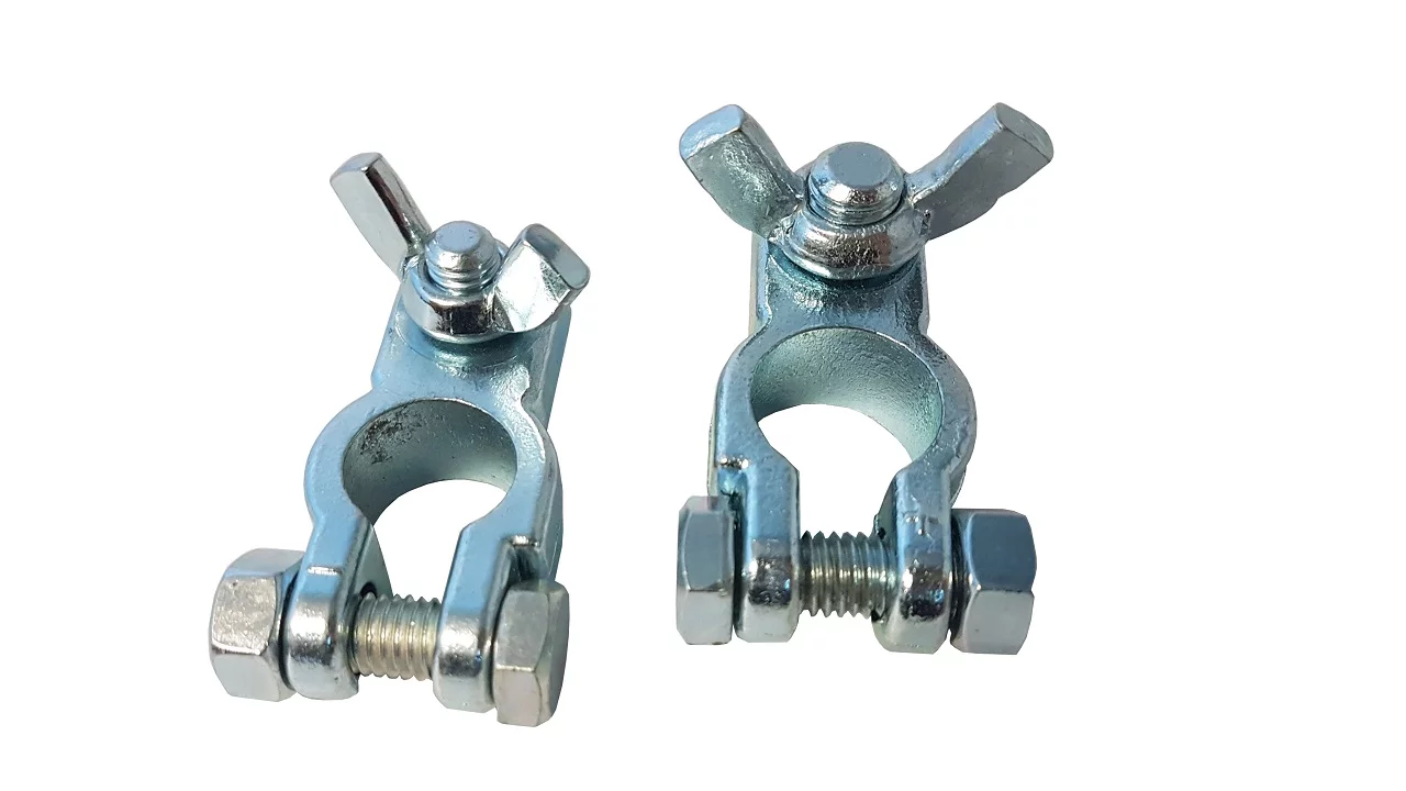 KOMPLET KLEM Z GÓRNYM PRZYKRĘCENIEM M8 (-) i M10 (+) MOTYLEK