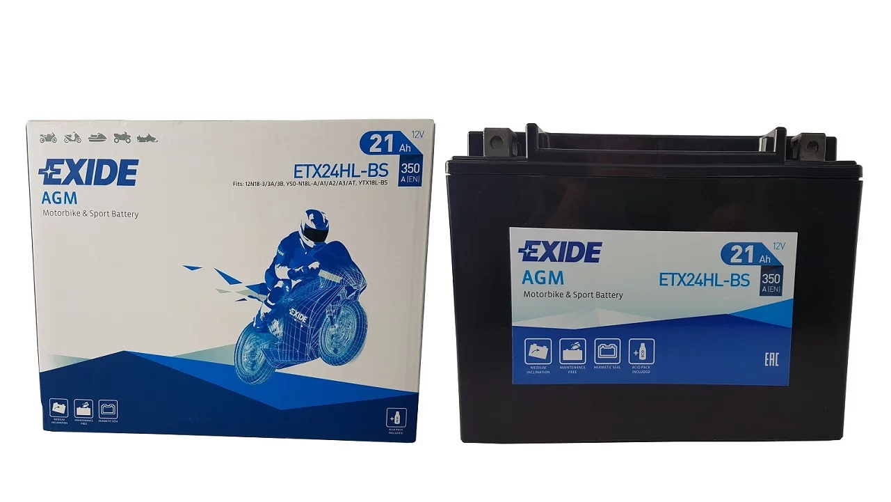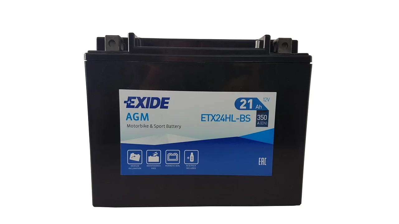 Exide dostarcza najwyższej jakości akumulatory do motocykli, zaprojektowane dla tych, którzy mają wysokie wymagania wobec swoich pojazdów. Do ich produkcji stosowane są najbardziej zaawansowane części i materiały dlatego są znane z niezawodności i doskonałej żywotności. Umożliwiają nie tylko pokonanie codziennej drogi do pracy ale również pozwalają na dotarcie do dalszych celów podróży, tych lądowych i morskich. Exide jest producentem oryginalnego sprzętu na tzw. pierwsze wyposażenie, dysponującym najbardziej nowoczesną technologią w branży.Akumulator Exide AGM - imponuje swą niezawodnością i trwałością - dobrze znosi mroźne zimy i inne trudne warunki pogodowe. Akumulator jest w pełni bezobsługowy, wymaga jedynie wstępnego napełnienia elektrolitem, aby rozpocząć działanie. Wykonany został w technologii AGM i pasuje do większości zastosowań, w tym do skuterów wysokiej klasy.