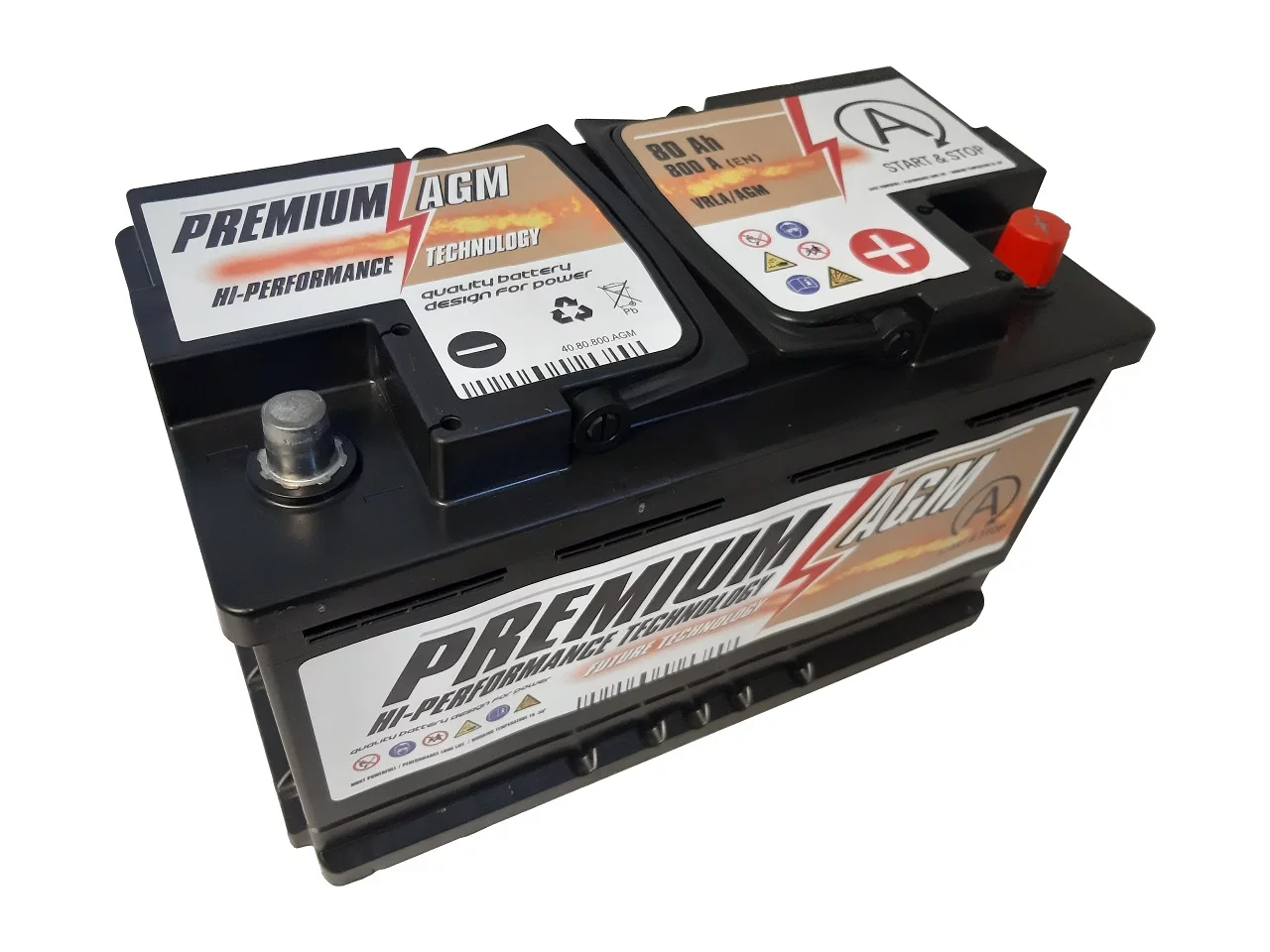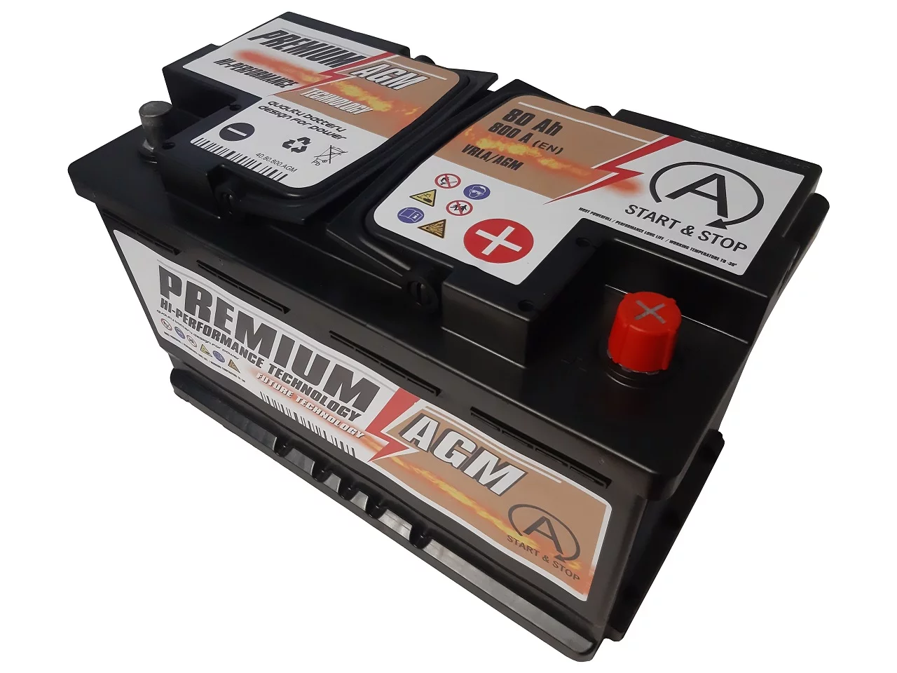 Akumulatory Premium AGM - wykonane w technologii Absorbent Glass Mat gdzie cały elektrolit skupiony jest w separatorach, tzw. matach wykonanych ze specjalnego włókna szklanego, umieszczonych pomiędzy ołowiowymi płytami akumulatora. Dodatkowo wyposażone są w jednokierunkowy zawór ciśnieniowy zwany VRLA (Valve Regulated Lead Acid) dzięki któremu z chwilą nadmiernego wzrostu ciśnienia wewnętrznego (zjawisko to może występować w sytuacji np przeładowywania akumulatora) akumulator bezpiecznie odprowadza powstały gaz na zewnątrz, zapobiegając rozsadzeniu obudowy.Technologia AGM pozwala akumulatorom serii Premium zapewnić 3-krotnie dłuższą wytrzymałość w porównaniu z akumulatorami konwencjonalnymi przez co idealnie wpasowują się do pojazdów z systemem START-STOP z odzyskiwaniem energii hamowania, ale także dla pojazdów z bogatym wyposażeniem w elektryczne funkcje komfortu.