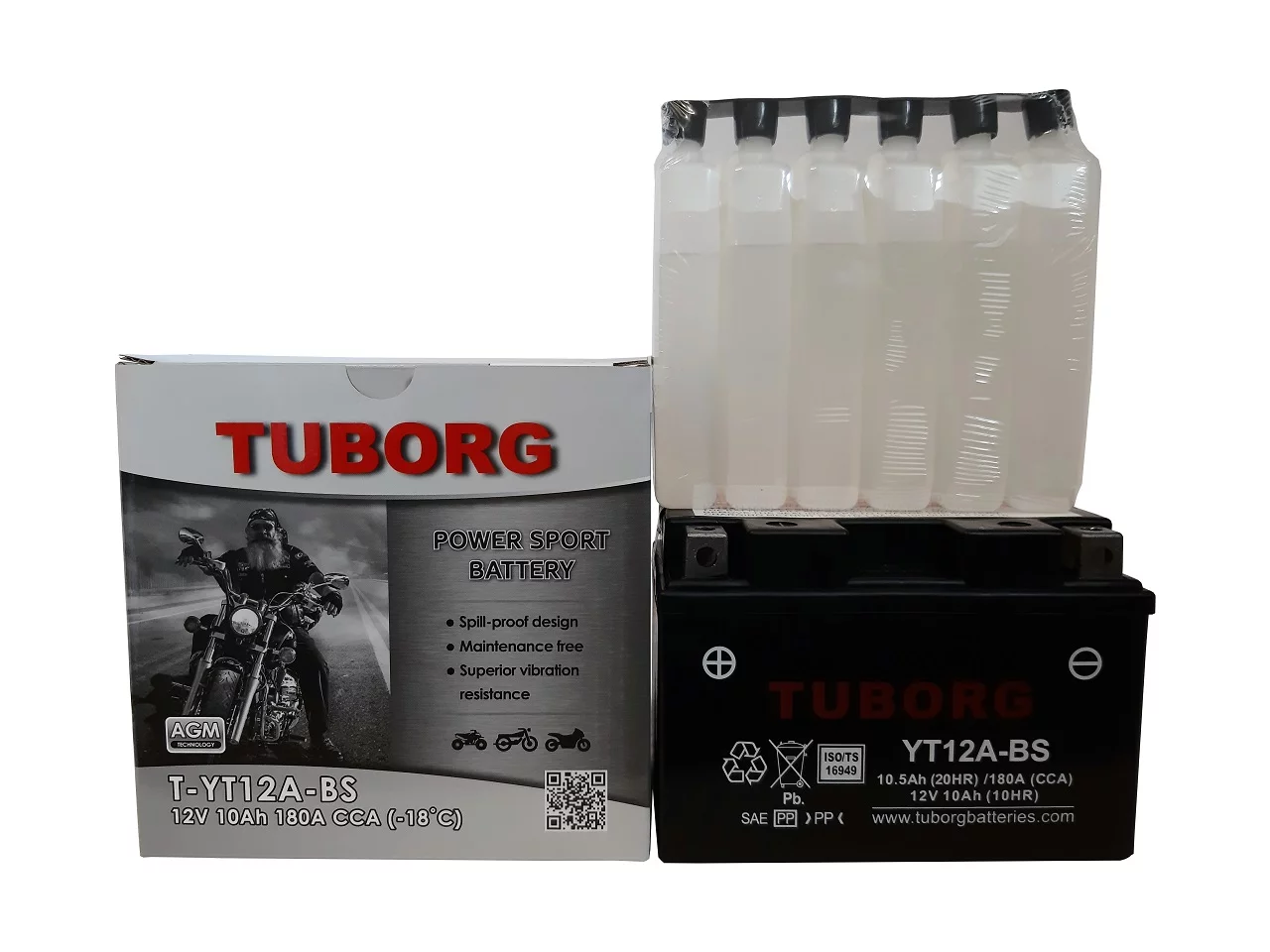 Wszystkie akumulatory Tuborg AGM spełniają najbardziej wymagające normy bezpieczeństwa. Aby utrzymać fabryczną świeżość bateria AGM jest transportowana na sucho z dołączonym pojemnikiem elektrolitu. Uruchomienie następuje na krótko przed instalacją akumulatora. Szczelnie zamknięta, raz napełniona elektrolitem bateria AGM staje się całkowicie bezobsługowa.