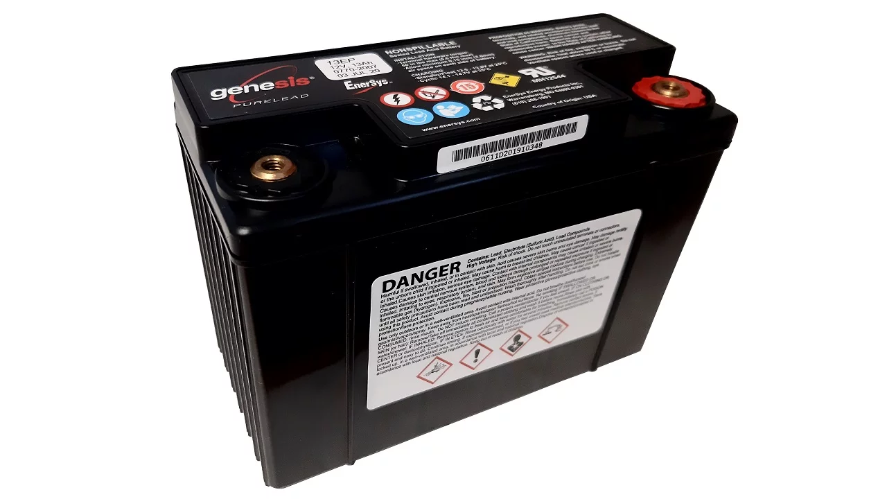 Akumulator amerykańskiej firmy Genesis G13EP 12V / 13Ah, G13EP został zaprojektowany do pracy rezerwowej jak i cyklicznej.Firma Genesis produkuje akumulatory które cechują najpotężniejsze parametry na rynku światowym. Wzmocniona seria akumulatorów EP została zaprojektowana do pracy przez okres do 10 lat przy cyklicznym rozładowaniu do 80%.